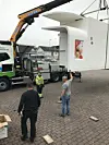 Isbaren ble plassert midt på Jørpeland torg, som tidligere var full av liv med salg av grønnsaker, jordbær og fisk.