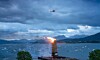 Grillet hamburger fra helikopter over verdens største bål